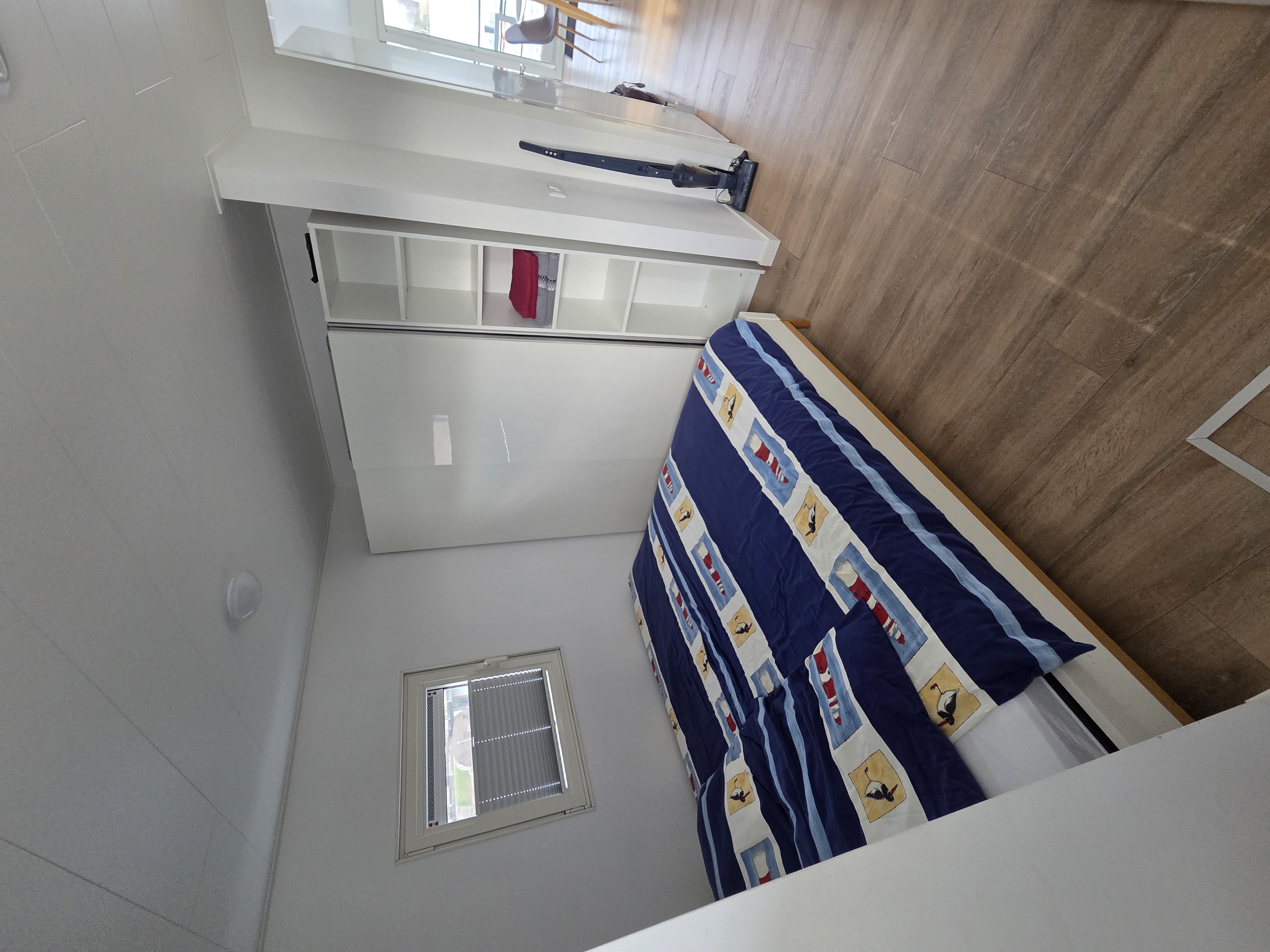 It offers every comfort... including a large comfortable double bed (180 x 200 cm) and a wall-mounted fold-down bed (140 x 200 cm) in the living room.